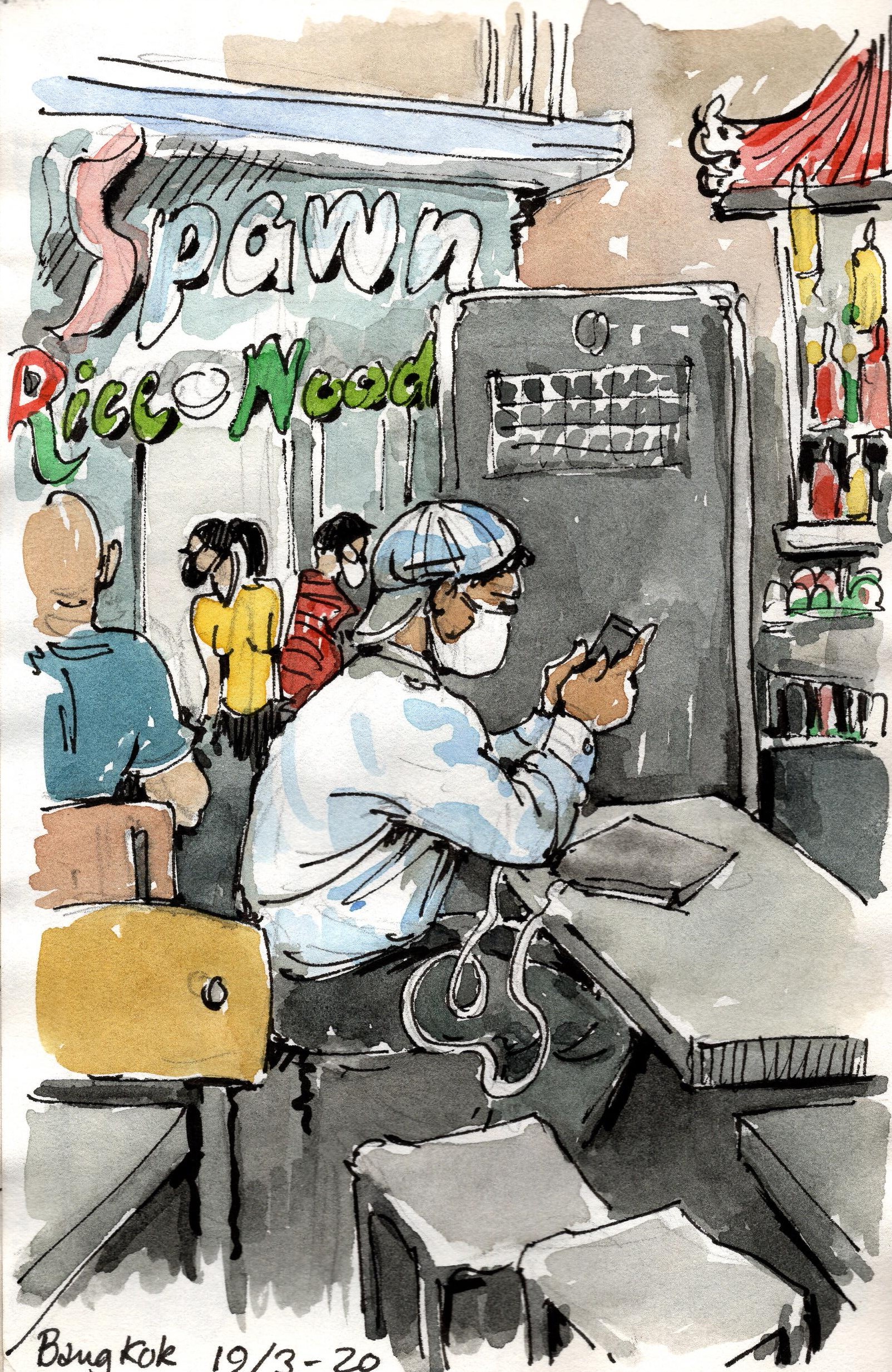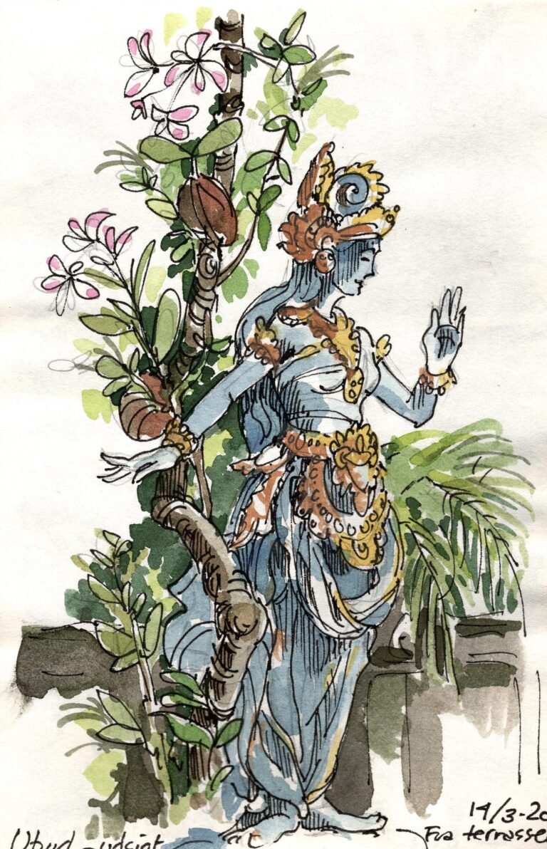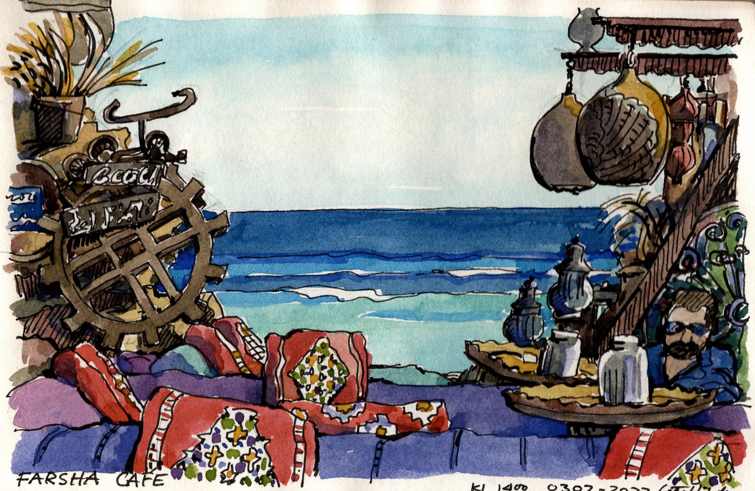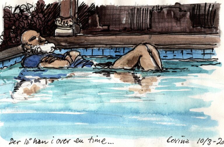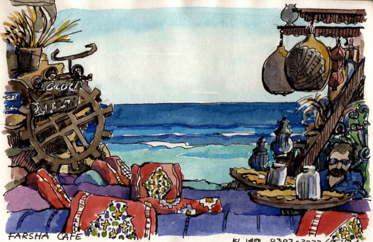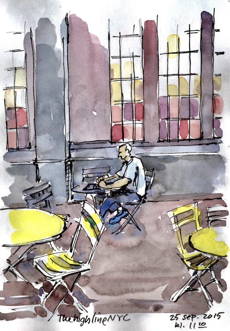 Jeg slæber altid mit tegnegrej med i rygsækken, nogle dage er jeg kommet hjem om aftenen uden den mindste streg på papiret. Men at kunne sætte mig når og hvor jeg vil og fordybe mig i at tegne en smuk udsigt eller en sjov situation skaber mulighed for fordybelse og giver nærvær som er meget tilfredstillende. Samtidig er billedsproget nonverbalt og jeg har haft mange skønne stunder med mennesker hvor vi har kunnet kommunikere på tværs af sprogbarriere, alder og kultur.