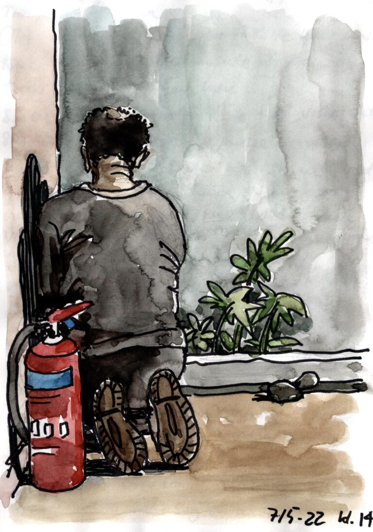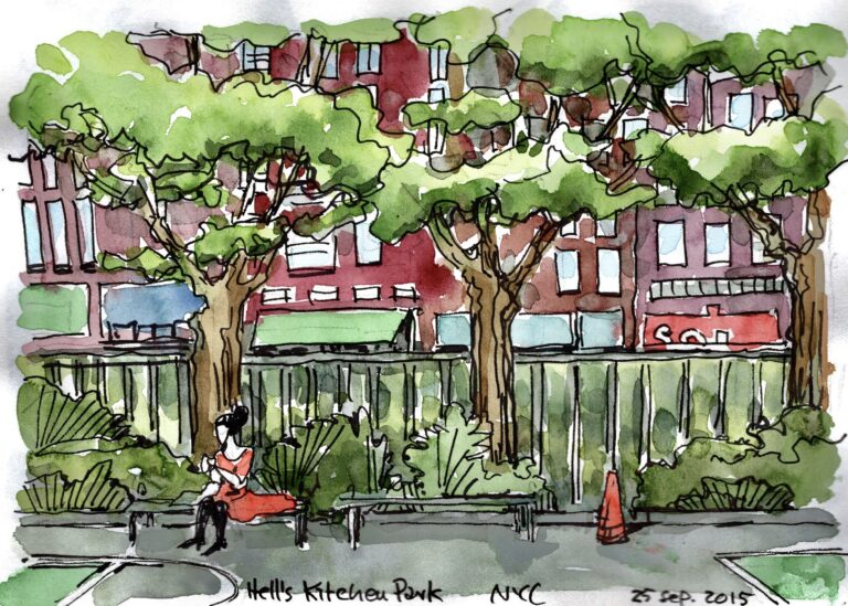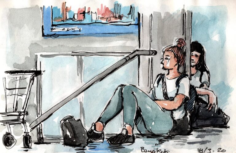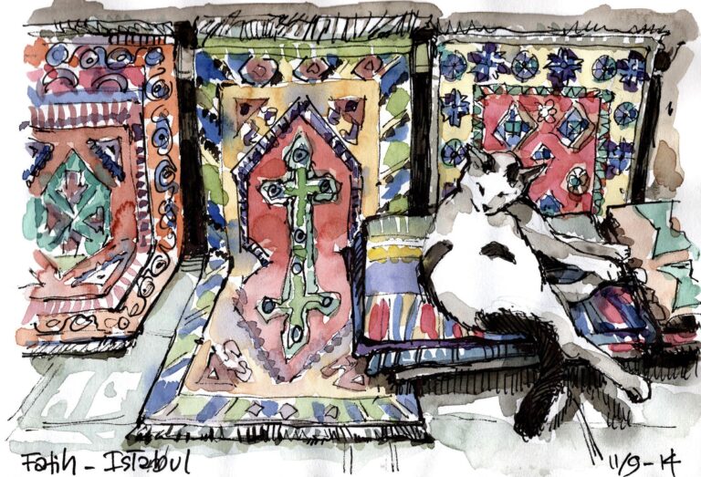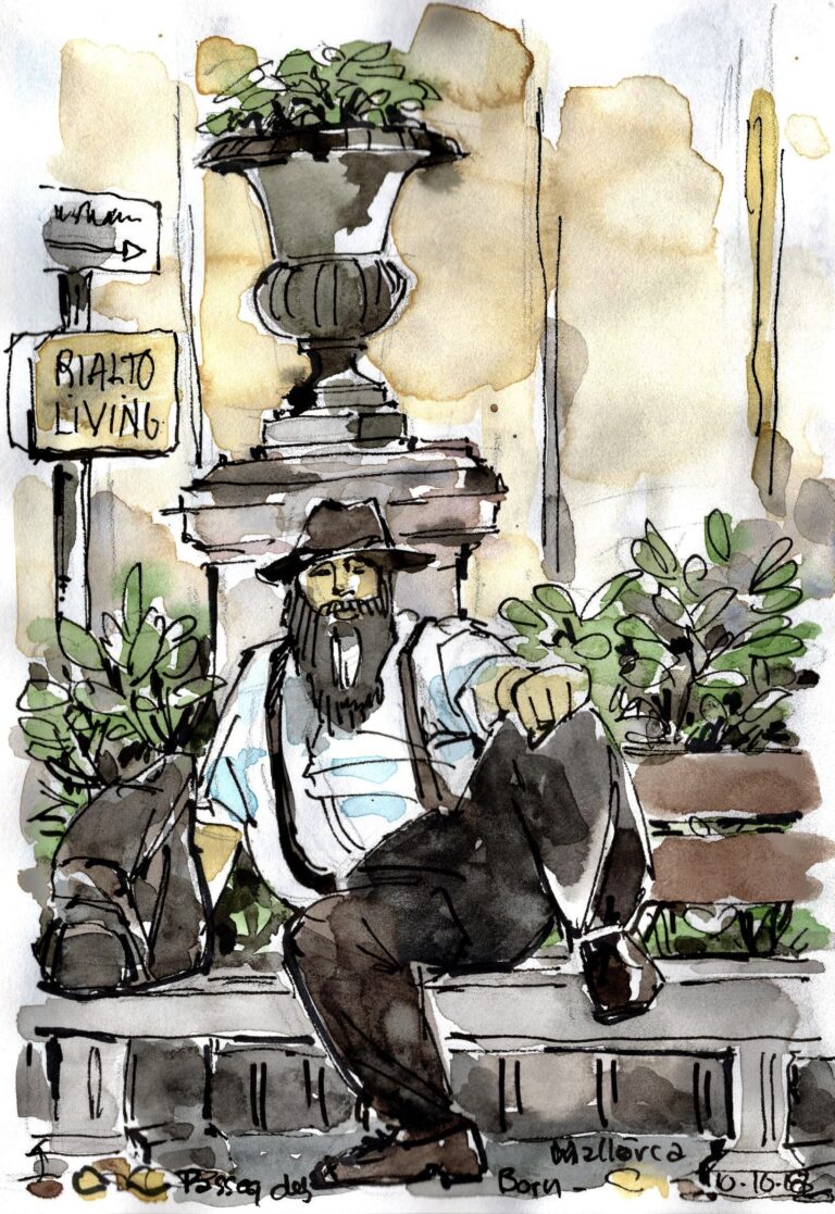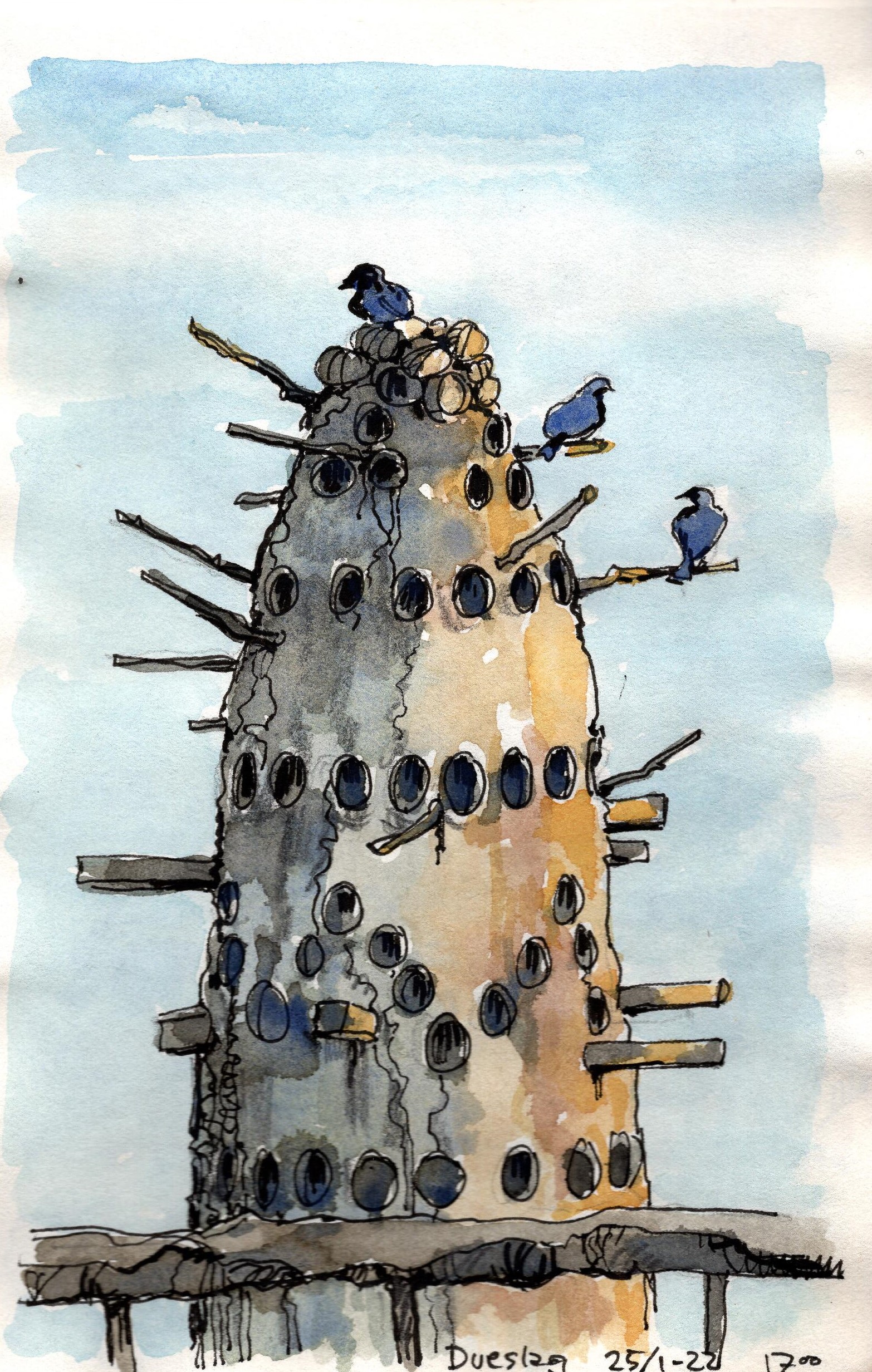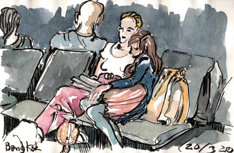 Jeg slæber altid mit tegnegrej med i rygsækken, nogle dage er jeg kommet hjem om aftenen uden den mindste streg på papiret. Men at kunne sætte mig når og hvor jeg vil og fordybe mig i at tegne en smuk udsigt eller en sjov situation skaber mulighed for fordybelse og giver nærvær som er meget tilfredstillende. Samtidig er billedsproget nonverbalt og jeg har haft mange skønne stunder med mennesker hvor vi har kunnet kommunikere på tværs af sprogbarriere, alder og kultur.
